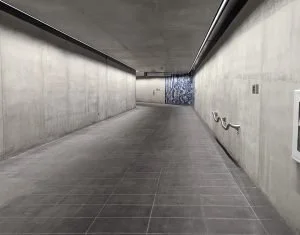 For a tunnel of this length, a handrail can make a big difference in comfort and safety for certain stakeholders. Even the visual contrast between the two images is stark: accessibility creates a much more welcoming space for everyone.